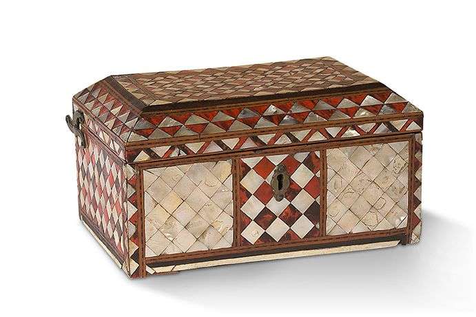 COFFRET OTTOMAN dit «de mariage» à âme de bois, décor en marqueterie de nacre et écaille.