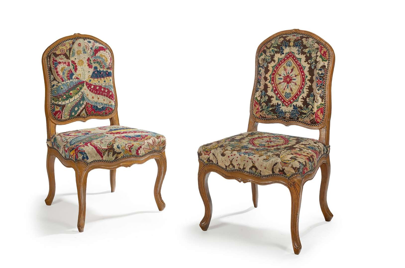 PAIRES DE CHAISES en noyer clair, au naturel mouluré reposant sur des pieds cambrés.