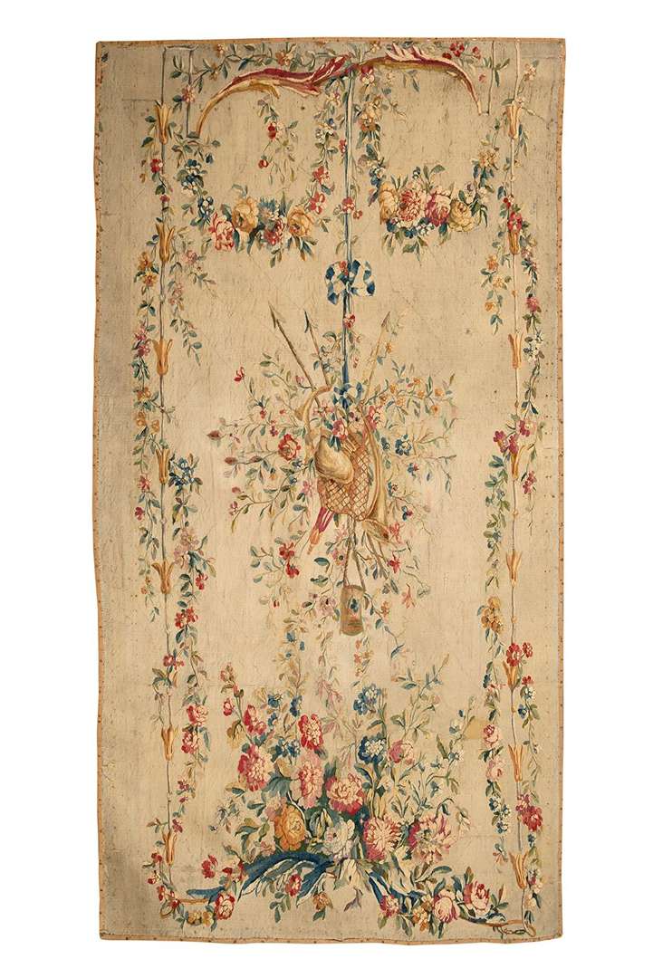 PANNEAU DE TAPISSERIE à décor d'attributs de musique et bouquets de fleurs