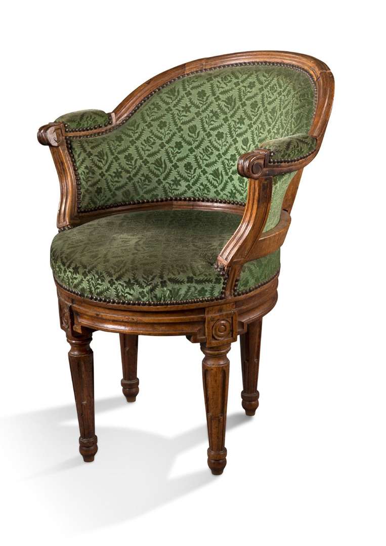 FAUTEUIL DE BUREAU à assise tournante en noyer mouluré et sculpté, à dossi
