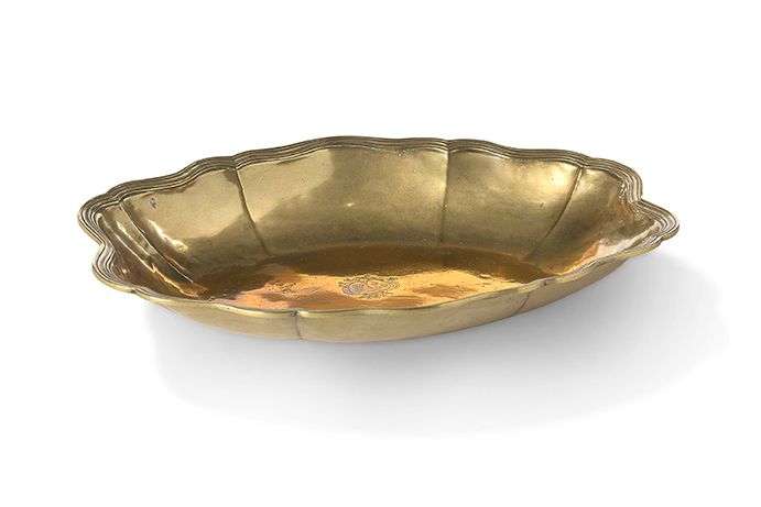 JATTE de forme oblonge aux contours chantournés à décor de filets.