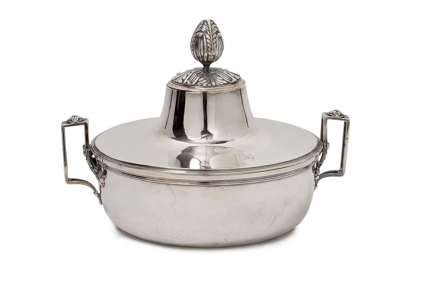 LÉGUMIER COUVERT en argent à anses doubles.