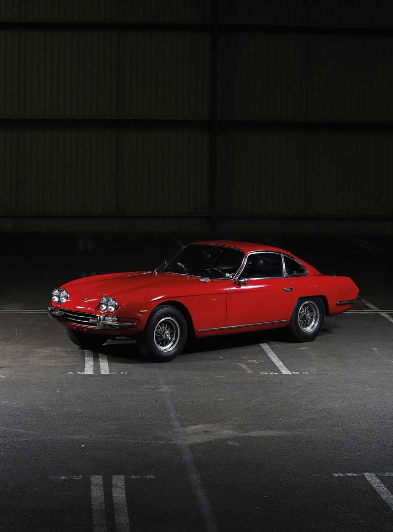 Nées de la volonté de l’industriel Ferrucio Lamborghini de concurrencer Ferrari en produisant des voitures de sport plus performantes et exclusives, les Lamborghini 350 GT, puis 400 GT, sont les pièces fondatrices de la nouvelle marque automobile installée à Sant’Agata Bolognese. Présentée au salon de Genève en mars 1964, la 350 GT fait sensation. Il faut dire que pour parvenir à ses fins, le riche italien, jusqu’alors davantage connu pour ses tracteurs et ses chauffages, a investi dans son nouveau projet les moyens de ses ambitions. Le dessin initial de la carrosserie a été confié à Francesco Scaglione, ancien responsable du style chez Bertone, qui a façonné des lignes modernes et dynamiques, ainsi qu’un large pavillon vitré, sur lesquels Touring effectuera les ultimes retouches pour aboutir à la version finale. Cette Lamborghini se singularise également par ses phares avant ovales, débordant du capot comme des yeux de grenouille. Enfin, l’habitacle présente tous les signes du raffinement à l’italienne : cuir, bois, chrome… Lamborghini a également vu les choses en grand pour son moteur. Cette mission a été confiée à l’ingénieur Giotto Bizzarini, transfuge de Ferrari, à qui l’on doit les Testa Rossa et 250 GTO. Sur la base de plans d’un V12 destiné à la Formule 1 (1,5 l à l’époque), il va adapter son projet à une cylindrée de 3,5 l qui aboutira à une mécanique plus sophistiquée que le V12 Ferrari 3 l. Enrichi des enseignements de la compétition, avec notamment une lubrification par carter sec, le V12 de Bizzarini va recevoir six carburateurs double corps verticaux logés non pas dans le V du moteur, mais entre les arbres à cames. Avec une cylindrée de 3 464 cm3, il développe 280 ch transmis aux roues arrières via une boîte 5-rapports ZF. Le châssis a été confié à Gian Paolo Dallara qui réalise un cadre de 85 kilos constitué d’un treillis tubulaire de section circulaire qui s’avère plus léger et mieux suspendu, grâce à quatre roues indépendantes, que celui des Ferrari et Maserati encore équipées d’un pont arrière rigide et de ressorts à lames. Au final, la 350 GT affiche seulement 1 200 kg sur la balance pour des performances de premier plan, puisqu’elle revendique 250 km/h en vitesse de pointe et pulvérise le 0 à 100 km/h en 7 secondes. Ainsi étaient posés les gènes de la 400 GT 2+2 qui sera présentée au salon de Genève 1966. La dernière-née de Sant’Agata Bolognese a été repensée et rendue plus spacieuse. La forme plus grande de la carrosserie, avec un plancher surbaissé et une ligne de toit légèrement remontée par Touring, a permis d’installer deux sièges à l’arrière, là où la 350 GT n’avait d’espace que pour un siège ou des bagages. La 400 GT 2+2 devient donc le premier véritable modèle 2+2 de Lamborghini. Elle se caractérise également par ses phares avant à double optique. La cylindrée du V12 est passée à 3 929 cm3 pour atteindre 320 ch à 6500 tr/min. Plus puissante, mais également plus lourde de 300 kg en raison de pièces de carrosserie en acier et non en alliage comme sur la 350 GT, la 400 GT 2+2 gagne 10 km/h en vitesse de pointe pour atteindre 260 km/h. La 400 GT 2 + 2 bénéficie également d’une boîte de vitesses conçue par Lamborghini, avec un système de synchronisation de style Porsche sur tous les rapports qui améliore considérablement la transmission. Entre 1966 et 1969, seulement 224 exemplaires de 400 GT 2+2 ont été produits. Ce qui en fait un modèle extrêmement rare et donc très recherché. Cet icone emblématique de la procduction italienne des années 1960, véritable tour de force d’un petit constructeur face au « géant » de Modène, a été vendu neuf en Italie où il a séjourné pendant de nombreuses années avant d’être exporté aux Etats-Unis où il passera successivement de la côte Est (état de l’Oklahoma et de Virginie) à la côte Ouest (état de Californie). La voiture revient en Europe au début des années 1990 à Aix-la-Chapelle. Puis elle sera acquise aux enchères fin 1990, avant d’intégrer la Collection Anna-Lisa. Son moteur, qui se présente en très bel état apparent, fut démonté en vue d’une restauration qui n’eut jamais lieu. Charge à son futur propriétaire de le remonter et de rouler dans une auto présentant un très beau jus, ou de commencer une restauration intégrale.