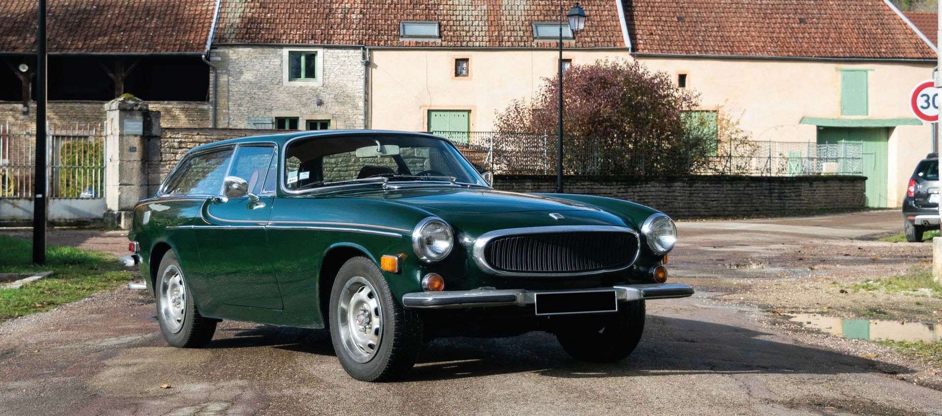 Si la première Volvo sort en 1926, il faut attendre la fin des années 1950 pour que le constructeur suédois ne se décide à étudier une voiture, sinon sportive, au moins Grand Tourisme, de catégorie moyenne, confortable et endurante, conformément à la réputation de la marque, avec comme objectif affiché de rajeunir son image de marque… et sa clientèle. L’étude du futur coupé est sous-traitée en Italie, chez Frua, et c’est finalement le dessin de Pelle Peterson , le fils d’un consultant de chez Volvo récemment embauché chez Frua , qui est retenu. La P1800 fut présentée en janvier 1960, au salon de Bruxelles, puis en avril à New-York. Les voitures, initialement construites chez Jensen, furent ensuite assemblées à l’usine de Torslanda, en Suède. La production s’étalera jusqu’en juin 1972, avec 39 414 Volvo P1800 puis 1800 S (pour Suède) et 1800 E (injection) construites. En août 1971, le coupé se voit épaulé par une nouvelle venue, la Jaktvagn, ou voiture de chasse en suédois. Ce sublime break de chasse, baptisé 1800 ES, étudié encore par Frua, sera construit deux ans seulement, à 8 077 unités jusqu’en juin 1973, uniquement en version injection avec le moteur 2l type B20. La P1800 ES que nous présentons est donc l’un des 5 007 breaks de chasse construits, et l’un des tous derniers sortis des chaînes. Notre exemplaire porte le numéro de série 8043, tandis que l’ultime P1800 commercialisée porte le numéro 8077. Il bénéficie de la sublime et rare teinte Vert cyprès code 110, combinée à un intérieur havane. Il fut importé des Etats-Unis en 2014, et immatriculé en France dans la foulée. La voiture est passée au contrôle technique à la fin du mois de juillet 2021 (CT favorable), mais présente néanmoins de nombreux défauts (planchers refaits non conformes, soubassements blacksonnés, carrosserie mastiquée, aile avant gauche mal réparée, points de corrosion perforante). Outre les défauts de carrosserie, on notera l’absence de certaines pièces d’accastillage intérieur, le non fonctionnement de certains instruments de bord (thermomètre d’eau et tachymètre notamment). En revanche, les sièges et la moquette présentent bien, et le moteur comme la boite de vitesse (avec overdrive) fonctionnent bien. C’est une auto qui conviendrait à un amateur courageux qui pourrait effectuer les travaux nécessaires dans la durée, tout en profitant de cette intéressante Volvo après une sérieuse révision.