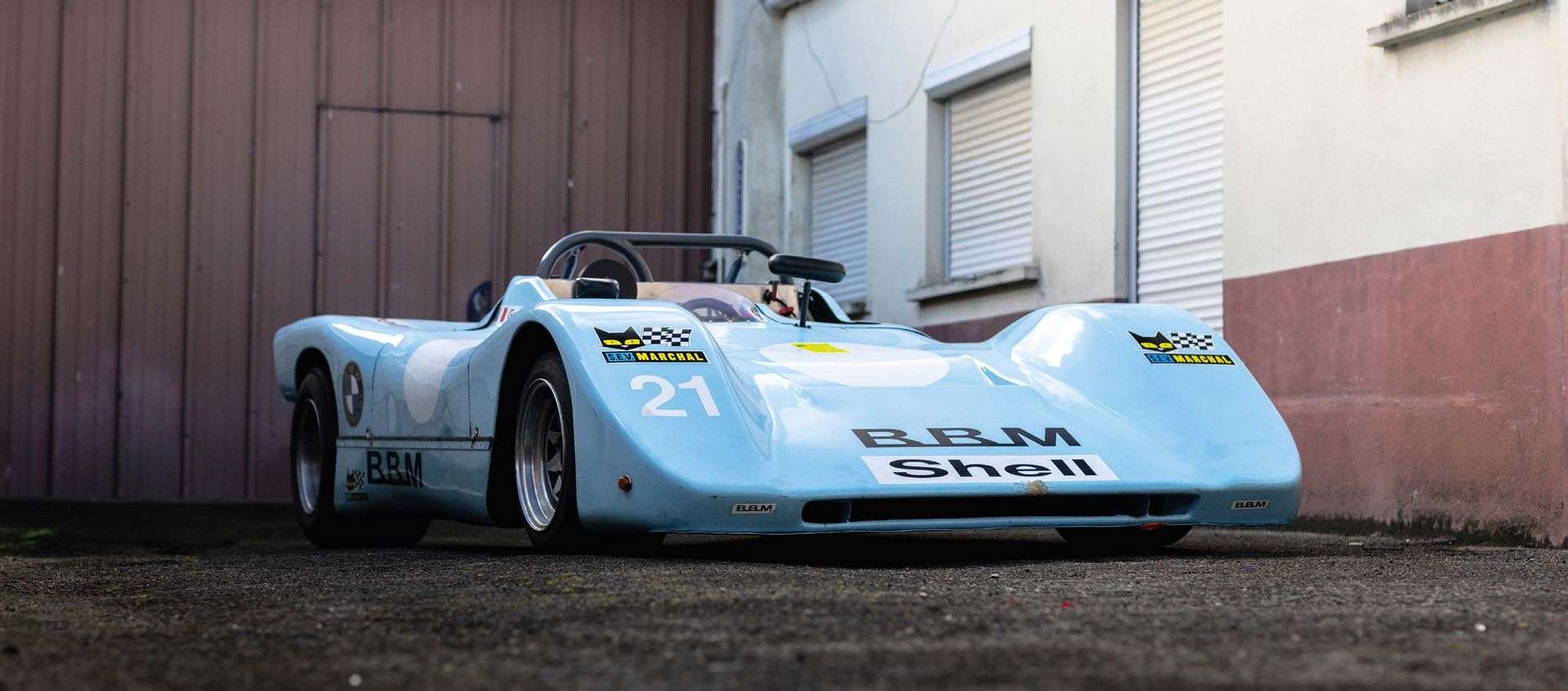Comme de nombreuses autres marques, BBM est née de la passion inconditionnelle d’une poignée de jeunes pour l’automobile. L’histoire de cette marque commence à Amiens au milieu des années 1960, avec la rencontre entre Pierre Bertin-Boussu et Jean-Michel Mercier. Encore étudiants, ils conçoivent et assemblent un châssis tubulaire équipé d’un groupe propulseur de Renault 8, la GM1 berlinette. Si leur première course de côte n’est pas une réussite, la BBM finira par faire parler d’elle aux mains d’un certain Guy Dhotel, récent vainqueur du volant Shell. Face aux succès qui s’enchainent, le trio décide de tenter pleinement l’aventure malgré quelques réticences familiales et, en 1971, débute une formidable aventure autour de ce modèle unique, le châssis C1#01. Totalement nouvelle, cette voiture devait être engagée aux 24 Heures du Mans 1971 grâce au soutien financier de Shell et d’Alfa Romeo qui voyait dans ce sport-prototype une excellente base pour leur fameux moteur V6. Avant même que la voiture ne soit produite, le service course de Shell parviendra à faire inscrire la BBM-Alfa Romeo aux 24 Heures du Mans… mais le moteur n’arrivera pas et sera finalement remplacé par un moteur BMW M10 Schnitzer 2,0 l associé à une boite Porsche 915, remettant en cause tout espoir de s’aligner au départ des 24 Heures du Mans (Shell étant partenaire officiel d’Alfa Romeo). A son volant Guy Dhotel prendra part à plusieurs courses de cote dont Neuvy-le-Roi (1er des protos), Robert-le-Diable (1er proto) et Soissons (2e proto). Après une casse moteur, elle sera revendue alors qu’un second châssis équipé d’un V12 Lamborghini voyait le jour ! Au total, seulement 42 châssis BBM furent produits. Parmi tous les constructeurs français de voitures de course des années 1970, BBM est probablement la marque la moins connue. C’est une profonde injustice tant les créations de BBM ont été des modèles d’efficacité et d’esthétisme. A ce titre, nous citerons Pierre Bertin Boussu : « Ce qui est beau marche toujours mieux que ce qui est laid ! » Achetée il y a de nombreuses années par un grand collectionneur de BMW originaire d’Amiens, l’ensemble de la mécanique est fonctionnel, tout comme les parties roulantes, (suspension, amortisseurs, moyeux et freins). Equipée désormais d’une crémaillère la voiture est totalement conforme à l’origine et est accompagnée d’un dossier historique retraçant toute son histoire.