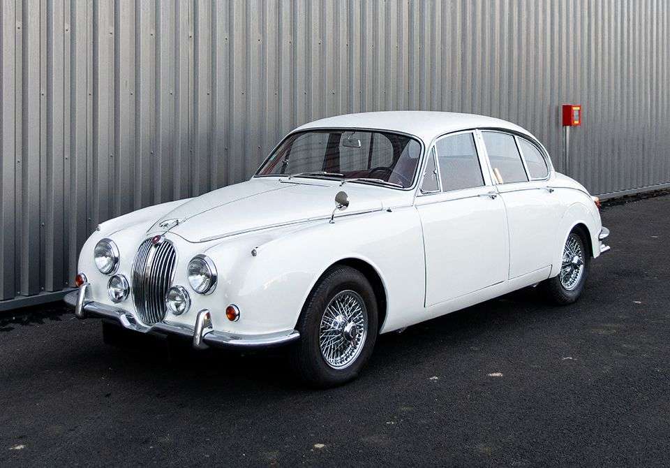 Présentée en 1959, la Mark II se définit à l'époque comme la berline de série la plus rapide du monde. Elle est une évolution de la Mk I qui fut la première berline Jaguar monocoque. La Mk II réussit à faire évoluer une ligne déjà très réussie, à la fois chic et sportive. L'automobile est homogène, beaucoup plus sportive que sa ligne élégante et cossue ne le laisse supposer. La Jaguar Mk II était proposée en trois cylindrées : 2,4 l, 3,4 l et 3,8 l, avec des transmissions manuelles, avec ou sans overdrive, ou automatiques, surtout destinées aux Etats-Unis. Ce modèle a été marqué par le développement de quelques innovations techniques marquantes. Elle fut en effet la première automobile à coque autoporteuse de la marque, munie de suspension à roues indépendantes à l'arrière et des freins à disques aux quatre roues. La voie arrière plus large que celle de la Mk I améliorait la tenue de route de l'auto. La Mk II arriva aussi au moment de la mise en service du réseau autoroutier qui permettait de cruiser en tout confort à plus de 160 km/h. Son luxe et son confort intérieur offraient standing et volupté. Lorsqu’en 1967 les ventes de Mk II s’essoufflent, Jaguar prolongera l’existence du modèle en leur apposant de nouveaux badges 240 et 340. Ils assureront l’intérim jusqu’à l’introduction de la XJ6.