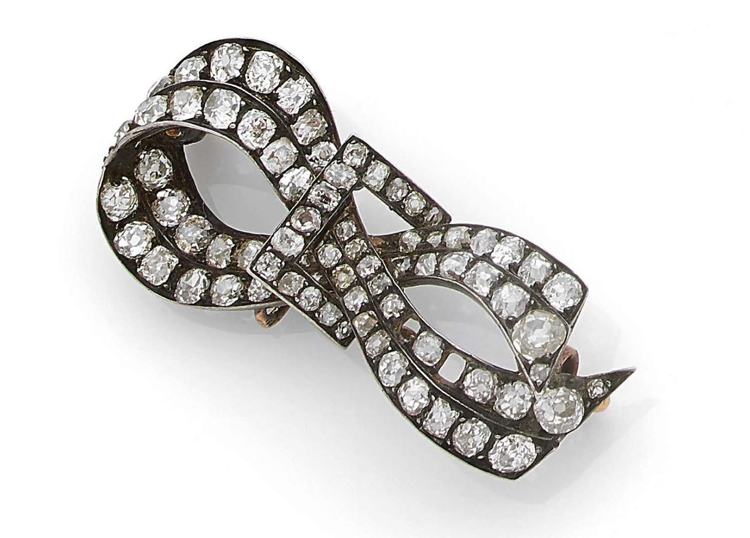 A diamond, gold and silver brooch element