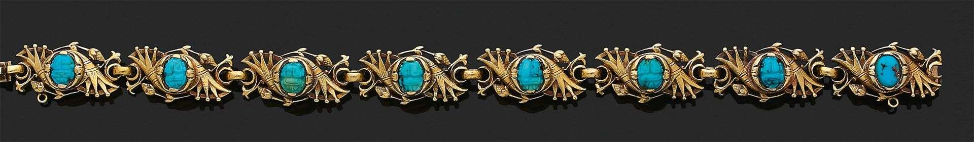 A turquoise and gold bracelet by René Boivin, certificate