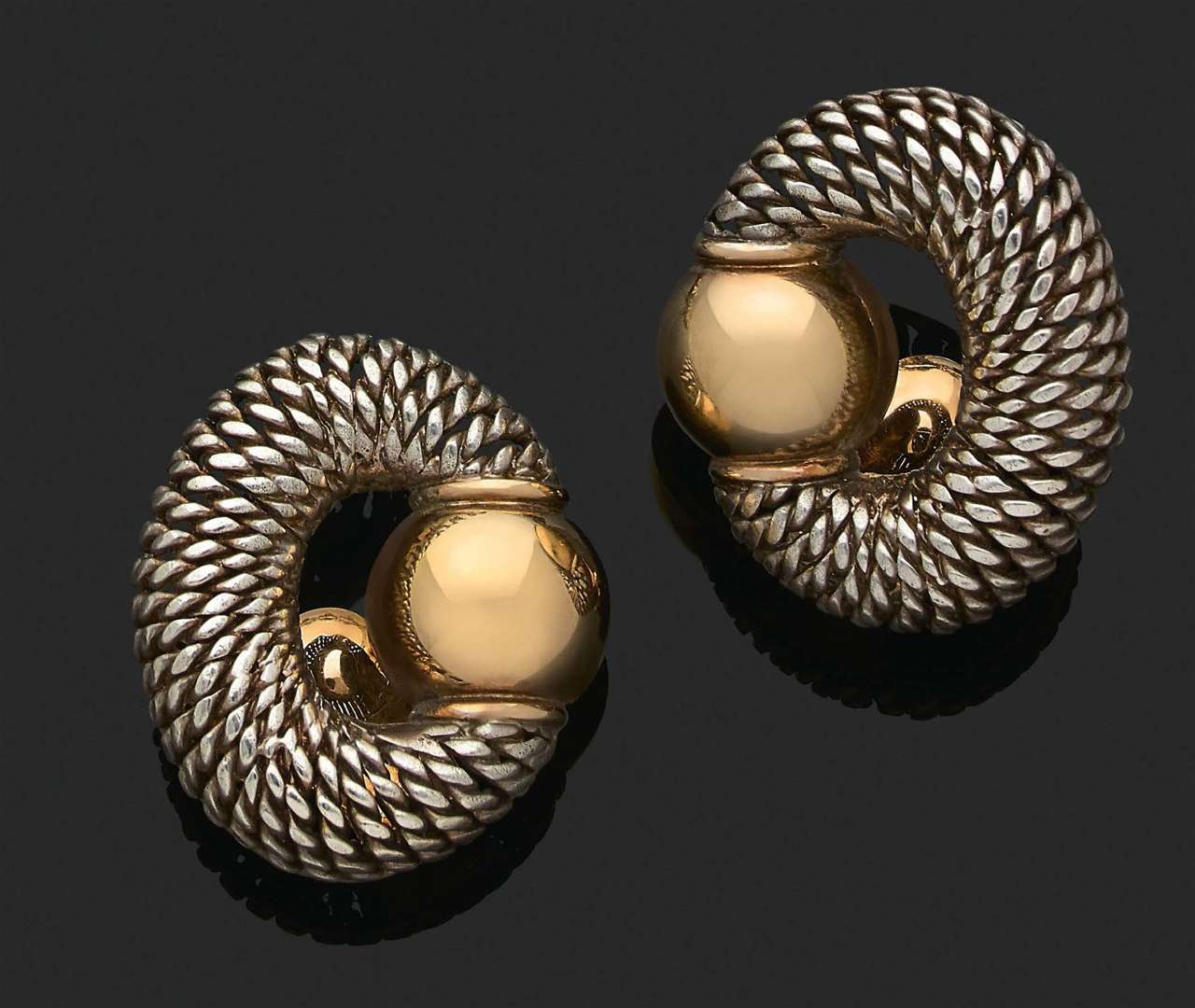 A gold and silver earrings by René Boivin, certificate