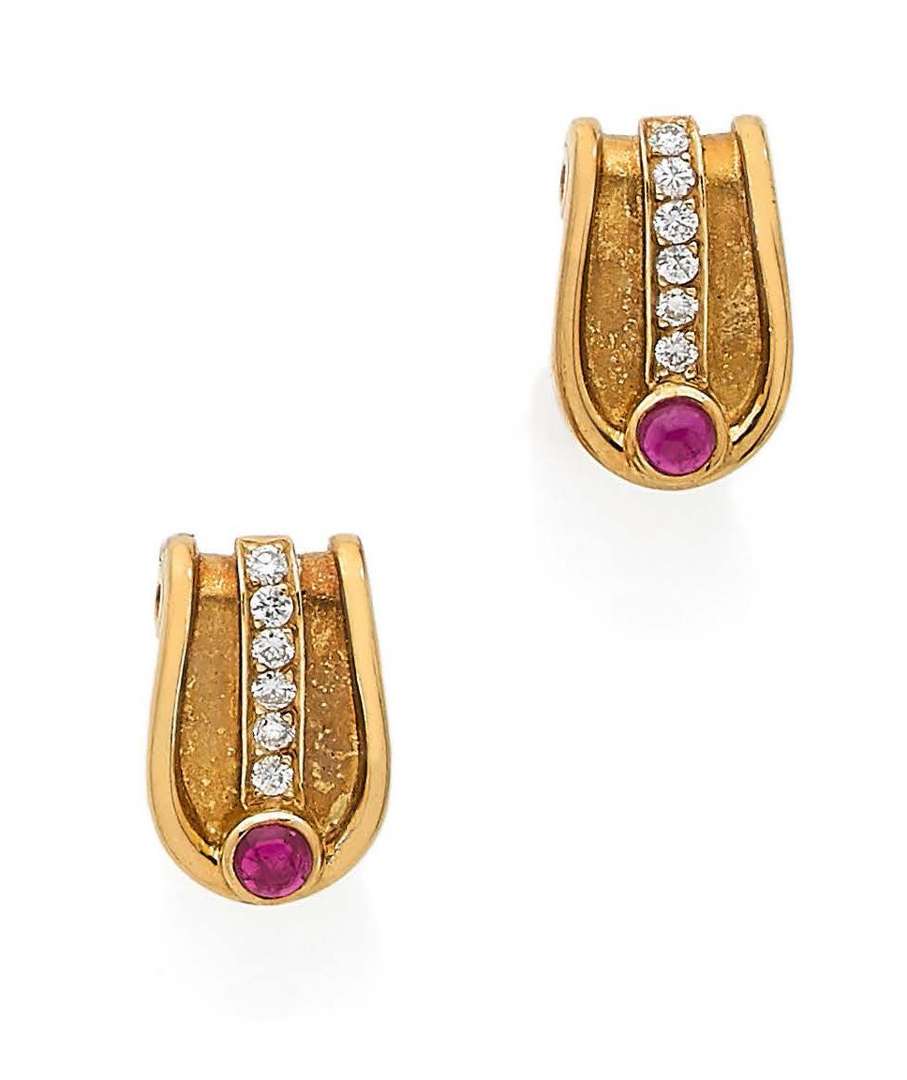Rubis cabochons, diamants ronds, or 18k (750)