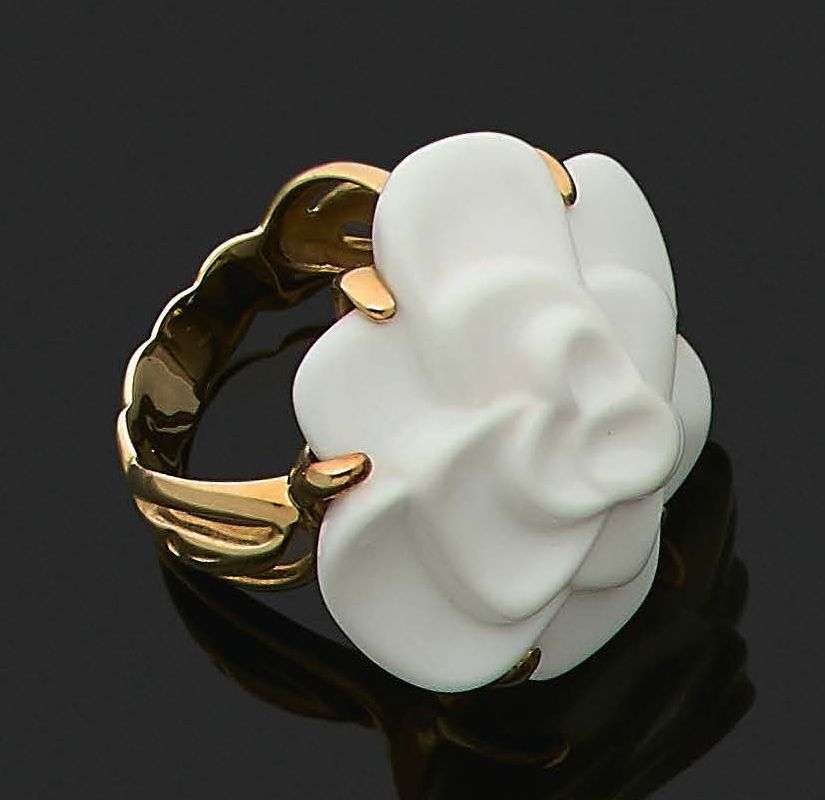 A white ceramic and gold ring, signed Chanel
