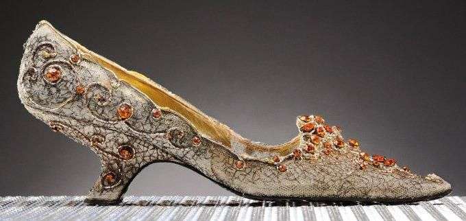 Escarpin du soir, talon «pied-de-chèvre », broderies de fil d'argent et de topazes sur tulle monté sur mèche de nylon. Travail de broderie par la Maison Rébé. Modèle créé pour la Princesse Soraya. Christian DIOR créé par Roger VIVIER. 1962. Reproduite dans Pierre Provoyeur, «Vivier» Editions du Regard - Paris 1991, p 95.
