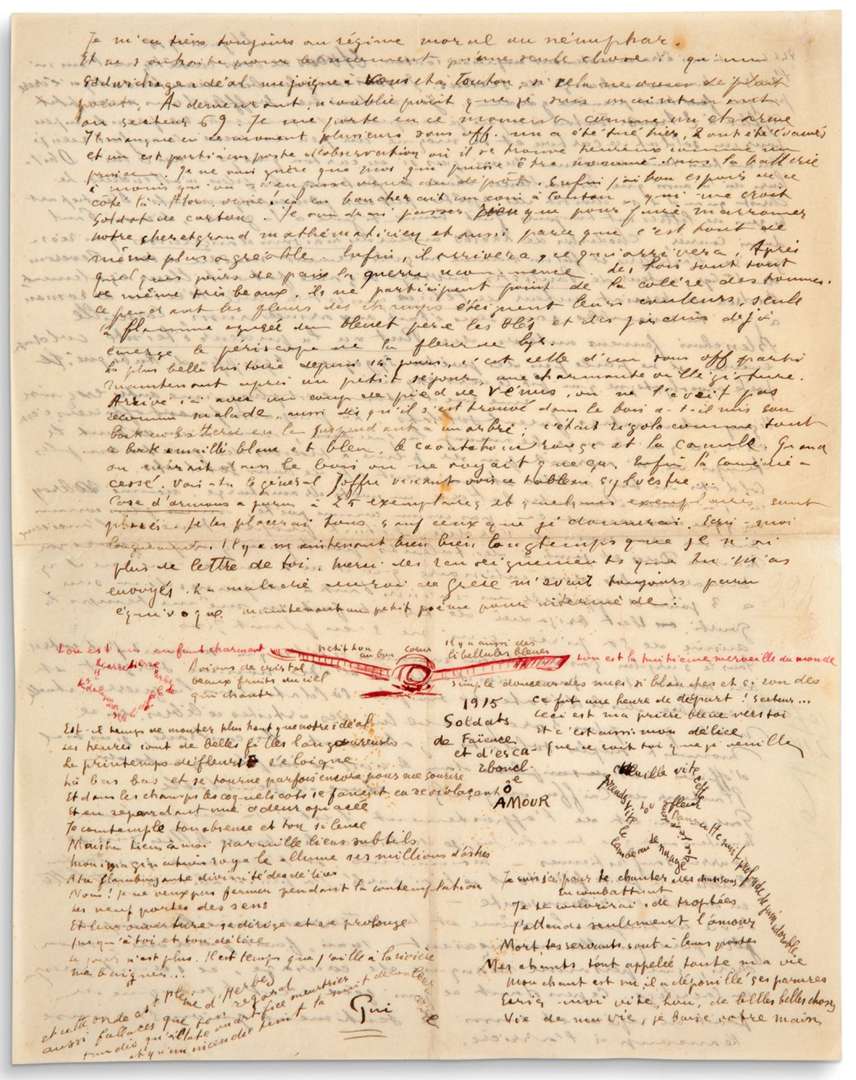 21 juin 1915, à Lou [Louise de Coligny-Châtillon] | 2 pages in-4 (fente au pli réparée). Magnifi que lettre en grande partie inédite.