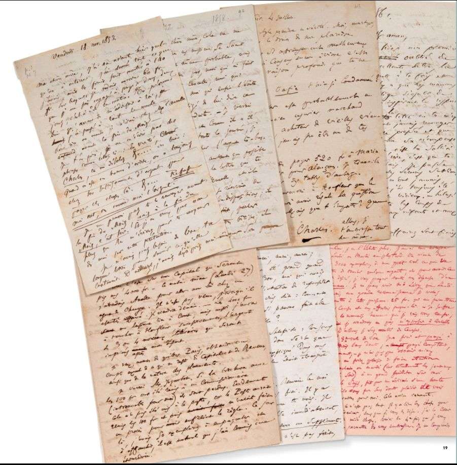 «J'ai de nombreuses visites à faire, toutes intéressées, des reçus à prendre partout, des oppositions et des saisies à faire lever, pour pouvoir toucher à Honfleur successivement le prix de mes articles. Enfin de nombreux bagages à expédier, et dont tu m'accuseras reçu. - Il faut que les bagages soient très bien faits. Je sais, par expérience, que le frottement du voyage abîme tout, livres, gravures et dessins.» «Quand j'ai senti que j'allais, par ton secours, recevoir un grand soulagement, comme je passais devant une boutique de chinoiseries, j'ai acheté pour toi deux petits plateaux pour servir le thé ou le café.