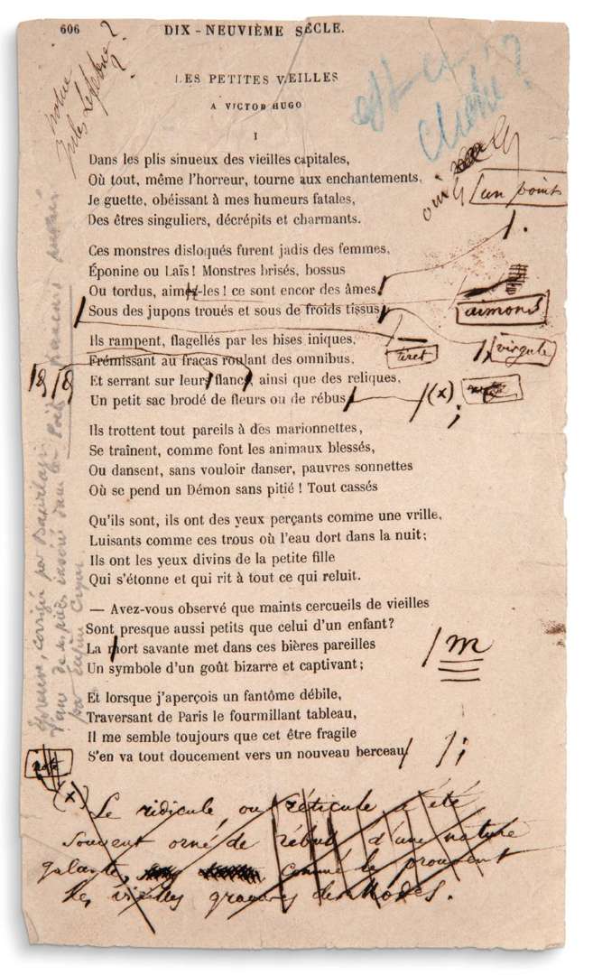 Épreuve corrigée du poème des Fleurs du mal : Les petites vieilles, dédié à Victor Hugo, pour l'Anthologie des Poètes