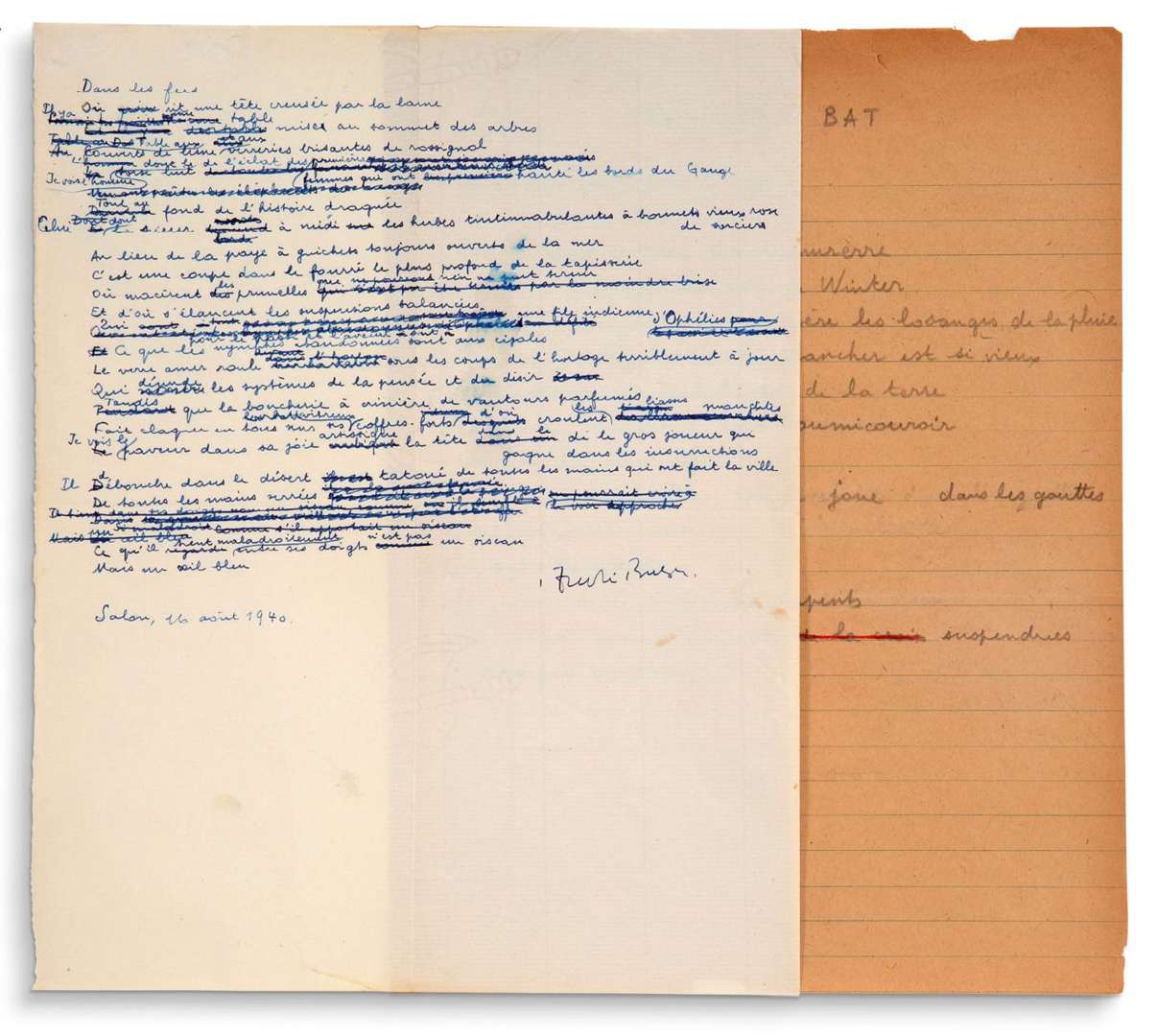 Breton, fragment de poème autographe, signé et daté Salon, 16 août 1940 | 1/2 page in-4.