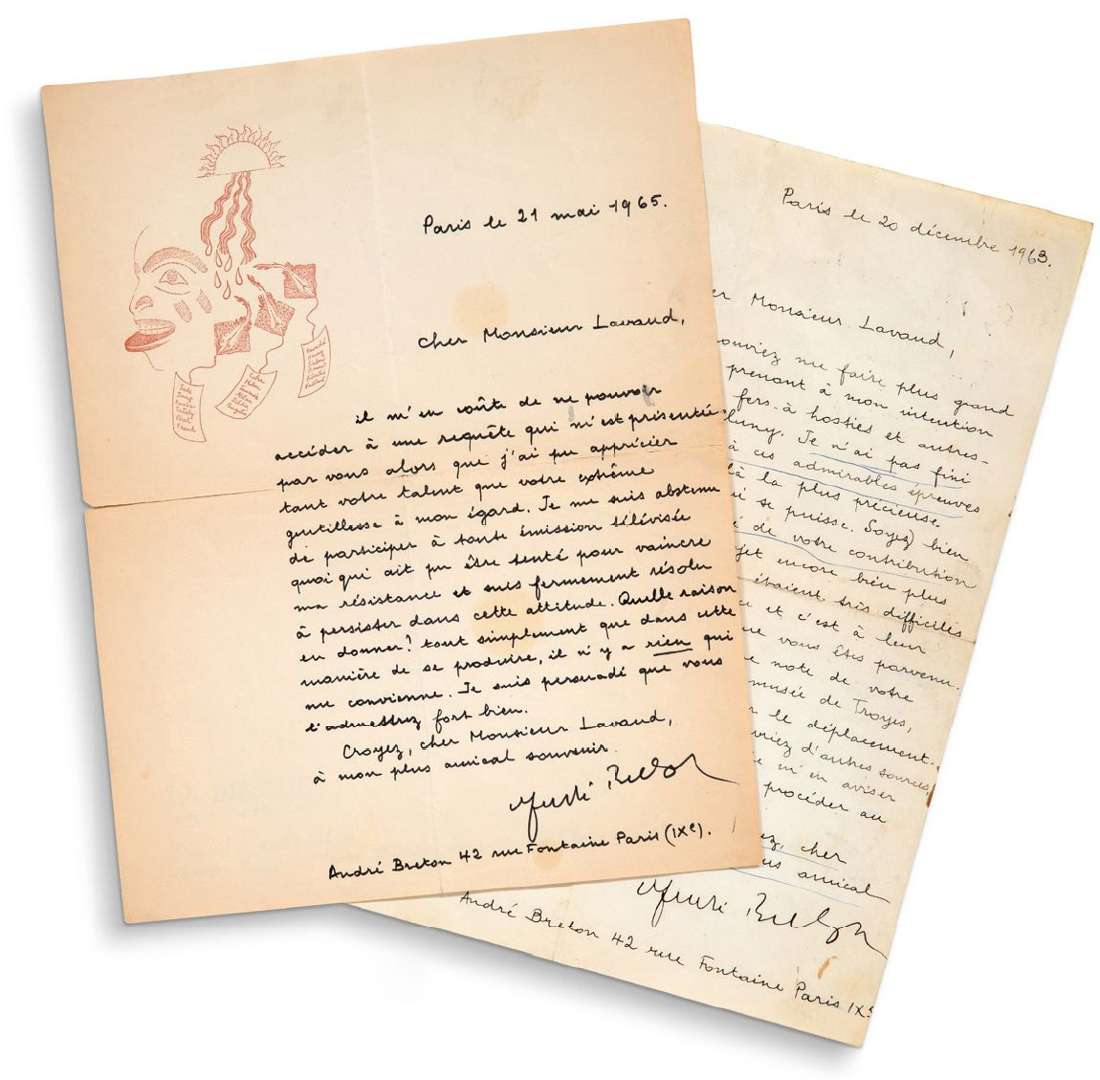 André Breton remercie M. Lavaud pour son aide concernant des fers à hosties -dont on sait qu'il les collectionnait.