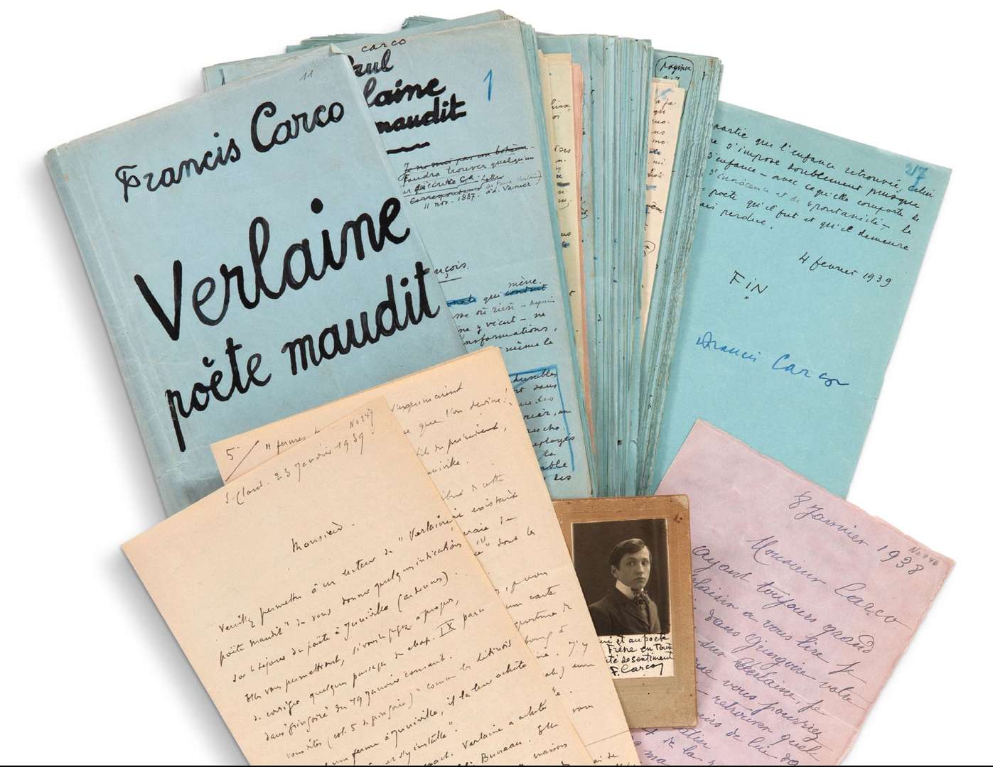 Verlaine poète maudit, manuscrit autographe signé en 1939.