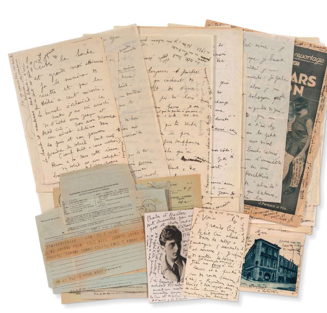 32 Lettres autographes signées Jean (ou étoile), dont deux avec dessin, et 16 télégrammes, 1932-1948, à Natalie PALEY | 54 pages formats divers (la plupart in-4), 4 lettres au crayon, 8 enveloppes (au nom de Madame Lucien Lelong ou Mme N. Desbordes) (quelques pages fendues aux plis ou eff rangées, une lettre déchirée).
