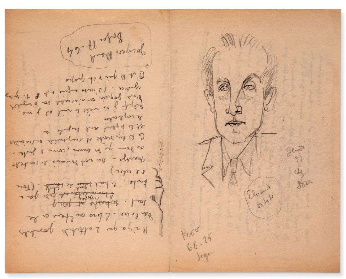 Étonnant portrait de Paul Éluard, avec un brouillon de lettre au maréchal