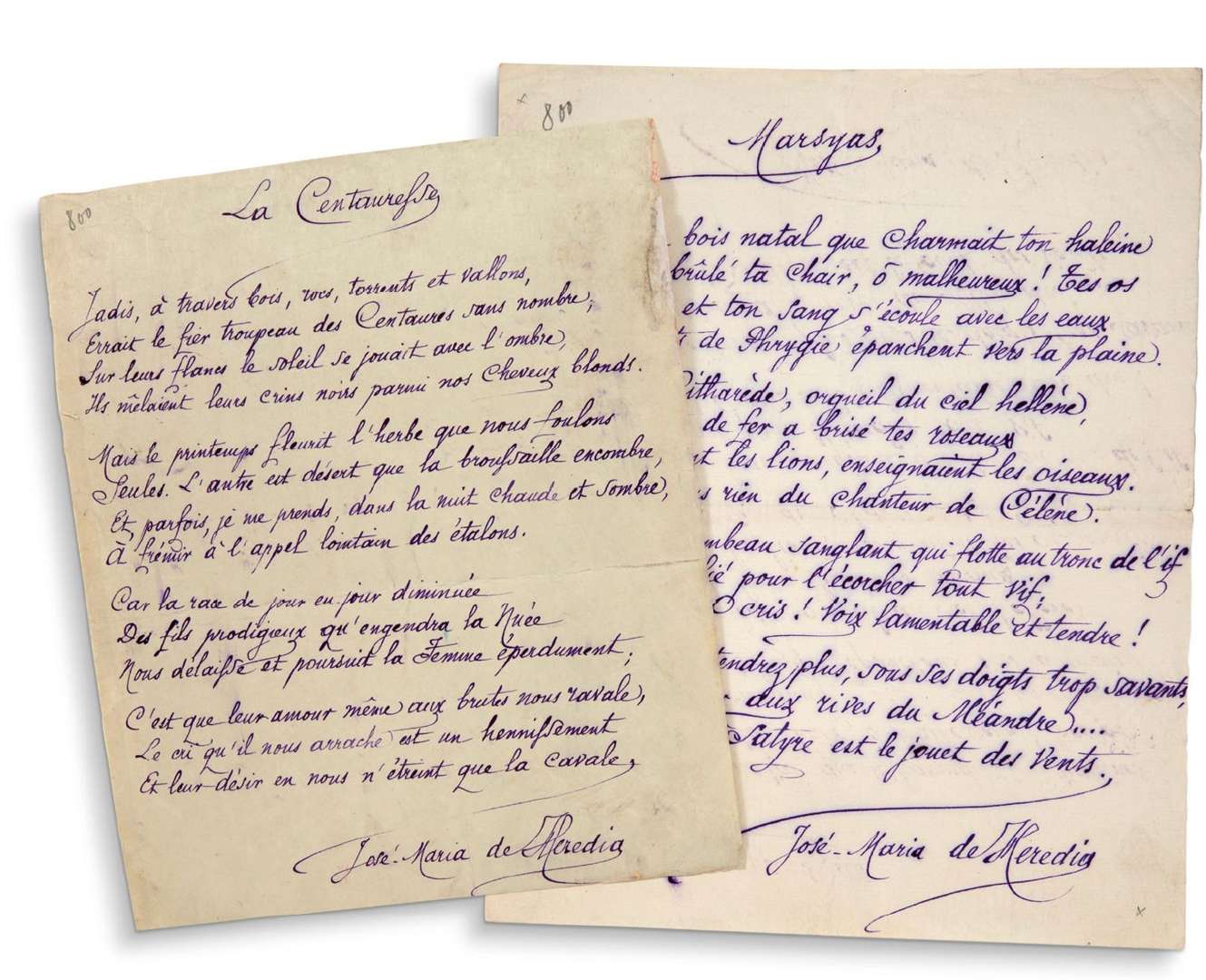 Marsyas et La Centauresse, poèmes autographes signés, 2 pp.