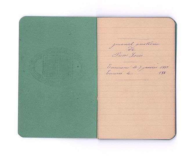 Journal autographe quotidien de Pierre Louÿs alors écolier de 11 ans en vacances dans la maison familiale de Dizy (Marne). «[...] Il fait ce matin un temps abominable qui m'empêche d'aller suivre le cours de chimie de Mr. Robinet. J'emploie ma matinée à arranger mon aquarium dans lequel j'ai mis hier quelques animaux aquatiques qui y vivent en assez bonne intelligence [...]».