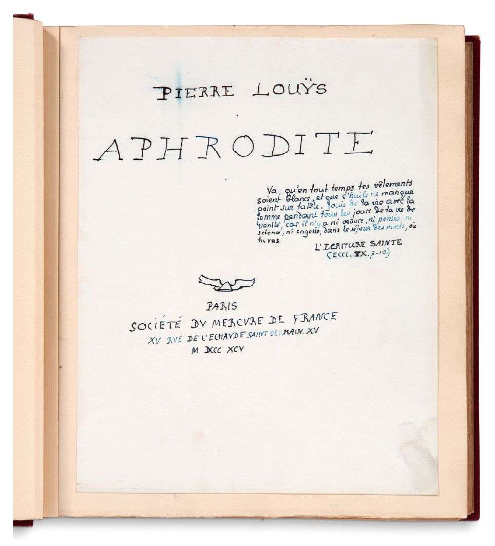 Projet de page de titre autographe de Pierre Louÿs.