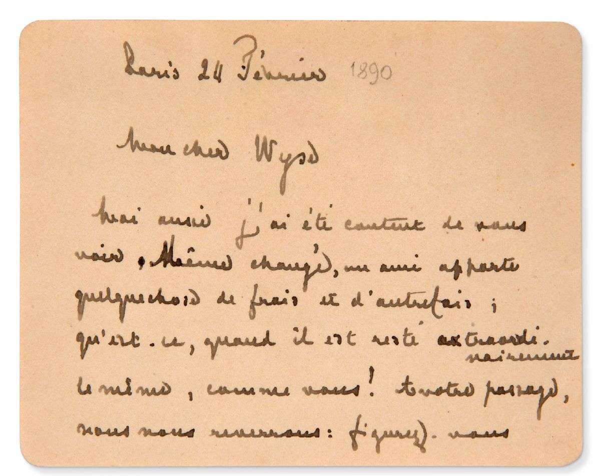 Paris, 24 février 1890. 2 pages in-16 oblong à l'encre, enveloppe conservée.