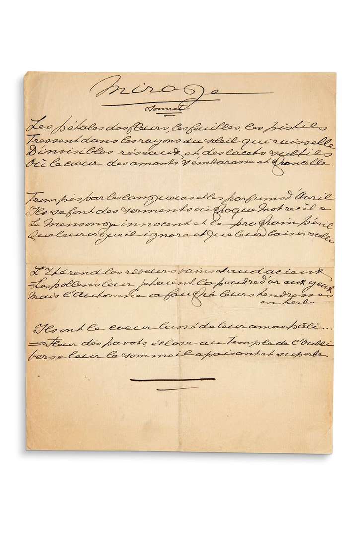 Mirage, poème autographe. 1 page in-4 à l'encre.