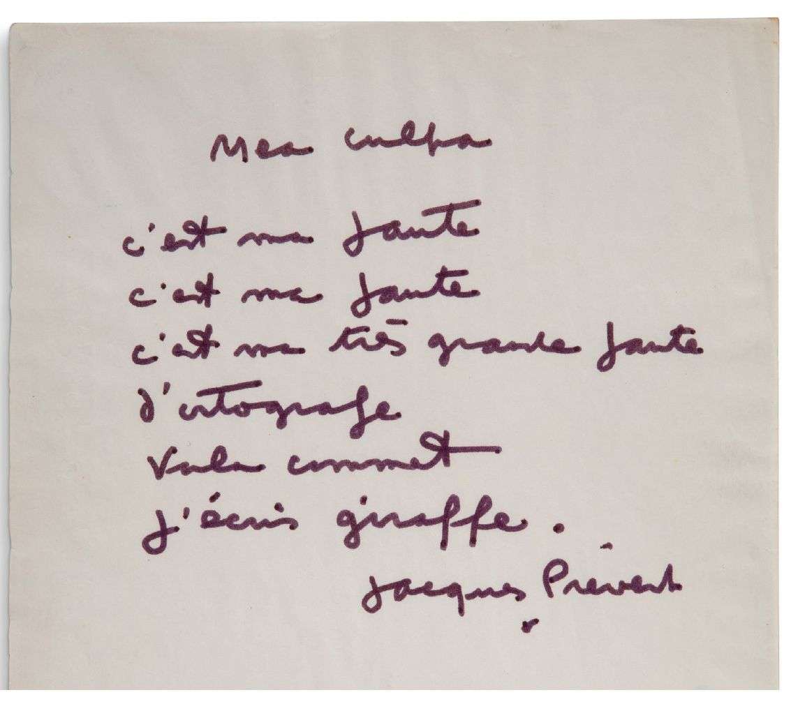 Mea Culpa, poème autographe | 1 page in-4 au feutre.