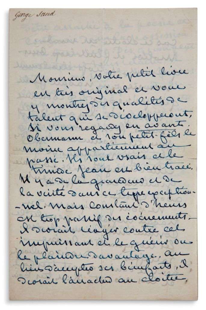 Magnifi que lettre de Sand à un écrivain qui lui avait envoyé son livre.
