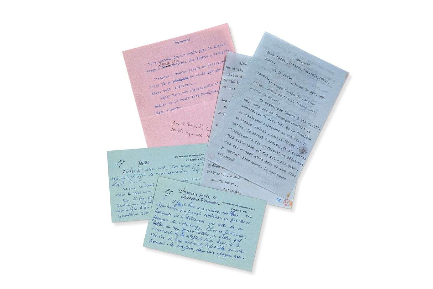 Lettre et manuscrits autographes, Prangins Jeudi [1939], à MADAME JEAN VOILIER | 4 pages in-12, sur 2 cartes à en-tête du Prieuré de Promenthoux, Prangins.