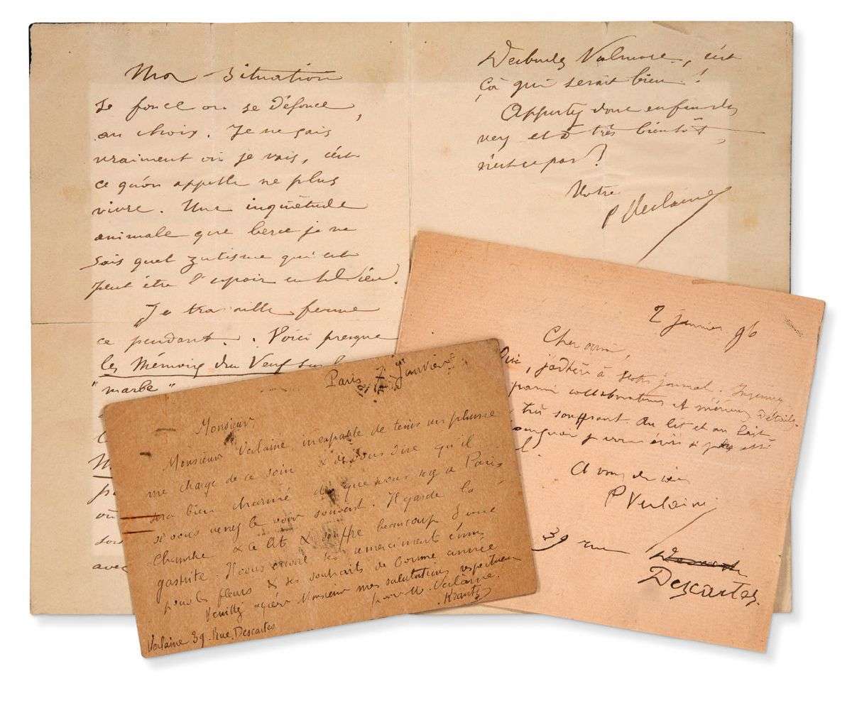 - Lettre autographe signée au poète Louis LE CARDONNEL , Paris, le 9 février 1886, 2 pages ½ sur papier de deuil. (Légères restaurations et pliures) «Tâchez d'avoir le plus tôt possible les Illuminations et apportez-les-moi en toute hâte.