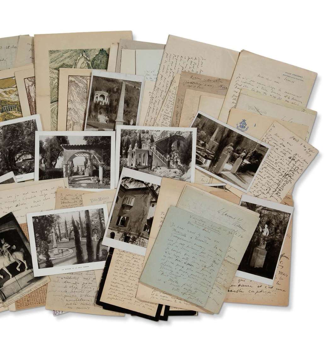 75 L.A.S. (2 incomplètes), 1904-1947, à André VIÉNOT| 258 pages formats divers, nombreux en-têtes, plusieurs vignettes gravées, qqs cartes postales illustrées (vues de ses jardins).