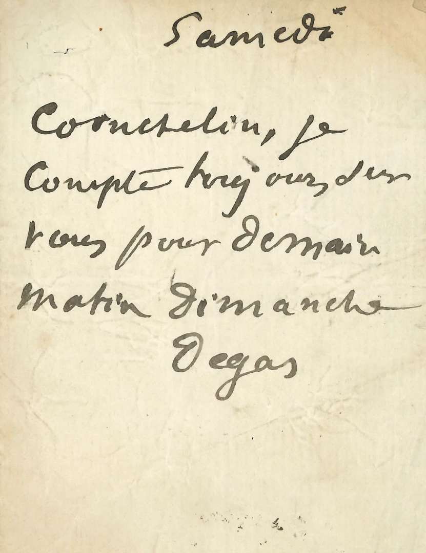 L.A.S. « Degas », Samedi | 1 page in-12 (papier légèrement froissé).~