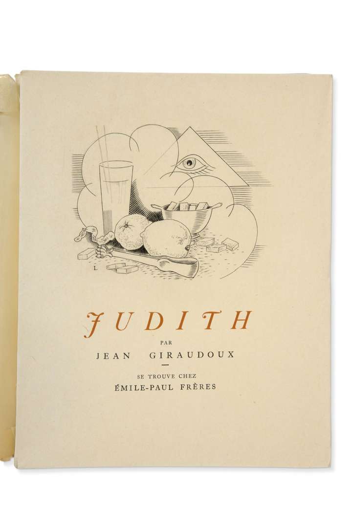 GIRAUDOUX Jean. - Promenade avec Gabrielle. Manuscrit de Jean Giraudoux (Paris, Nouvelle Revue Française, 1919 [1924])| in-8, broché, couverture rempliée. Première édition séparée de ce texte issu du roman Simon le pathétique. Tirée à 185 exemplaires, cette édition reproduit le manuscrit de Giraudoux en fac-similé, illustré de 16 lithographies en couleurs à mi-page de Laboureur. Un des 170 exemplaires sur vergé d'Arches (couv. déchirée au dos, qqs petites rousseurs). - Hélène & Touglas ou les joies de Paris (Paris, Au Sans Pareil, 1925)| in-16, rel. maroquin citron janséniste, dos lisse, non rogné, couv. et dos conservés, étui (O. de Font- Réaux, dos passé). Édition originale de cette nouvelle (intégrée en 1932 à La France sentimentale), illustrée d'un frontispice, d'une planche et de 4 figures dans le texte, dessinés et gravés au burin par Laboureur. Un des 100 exemplaires sur vergé de Hollande. - Judith. Tragédie en trois actes (Paris, Émile-Paul frères, 1931)| in-8, broché, couverture rempliée. Édition originale, illustrée de 6 gravures en taille-douce de Laboureur. Un des 200 exemplaires sur vélin d'Arches (qqs rousseurs aux premiers et derniers ff.).