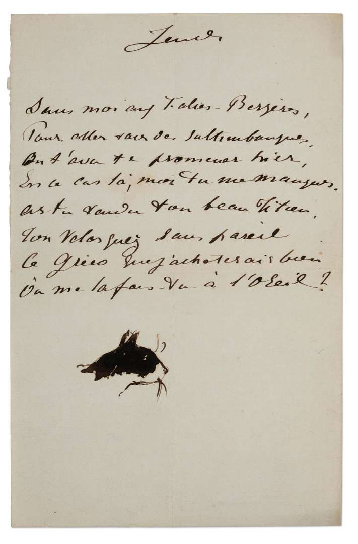 Lettre-poème autographe avec DESSIN original, Jeudi, [probablement à Henri ROUART]| 1 page in-8 (207 x 134 mm).