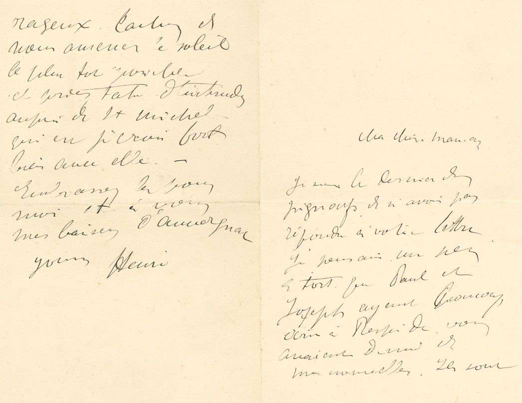 2 L.A.S. «your boy Harry» et «Henri», [Paris juin-juillet 1892], à SA MÈRE, la comtesse Adèle de TOULOUSE-LAUTREC| 3 pages et demie in-8 chaque.