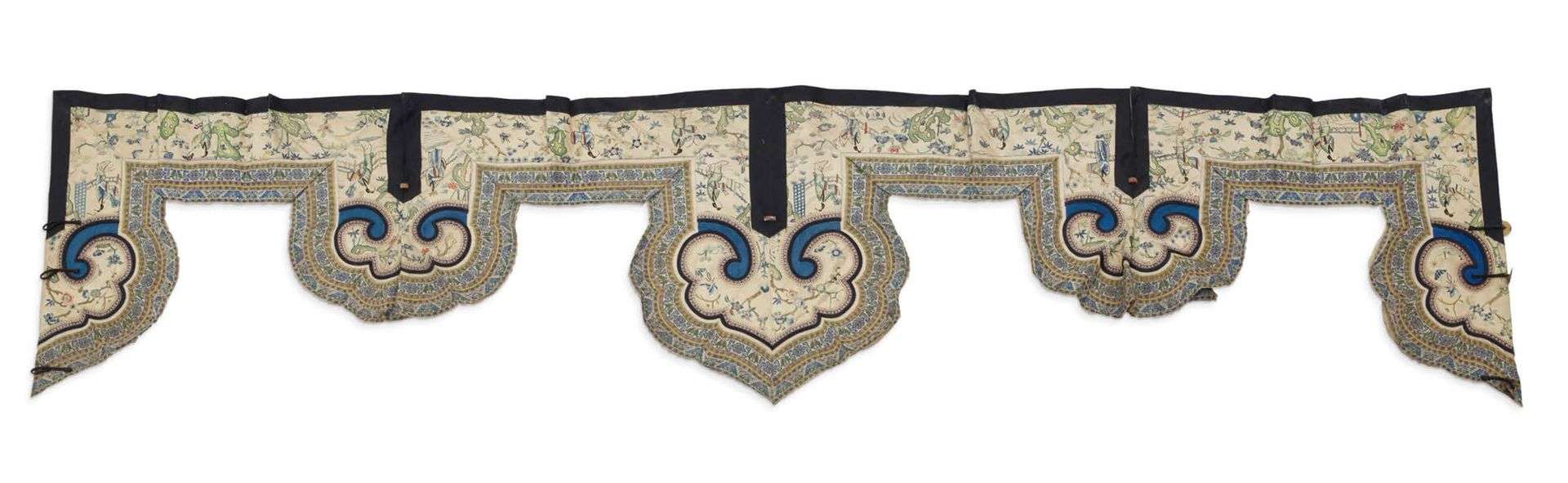 Lot comprenant trois ornements d'autel et de costumes à décor de fleurs.