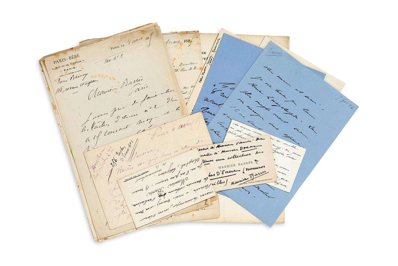 11 L.A.S. et 1 L.S. « Maurice Barrès » ou « M. Barrès », 1885-1896 et s.d., à l'éditeur Léon VANIER | 12 pages formats divers (3 sur cartes de visite).