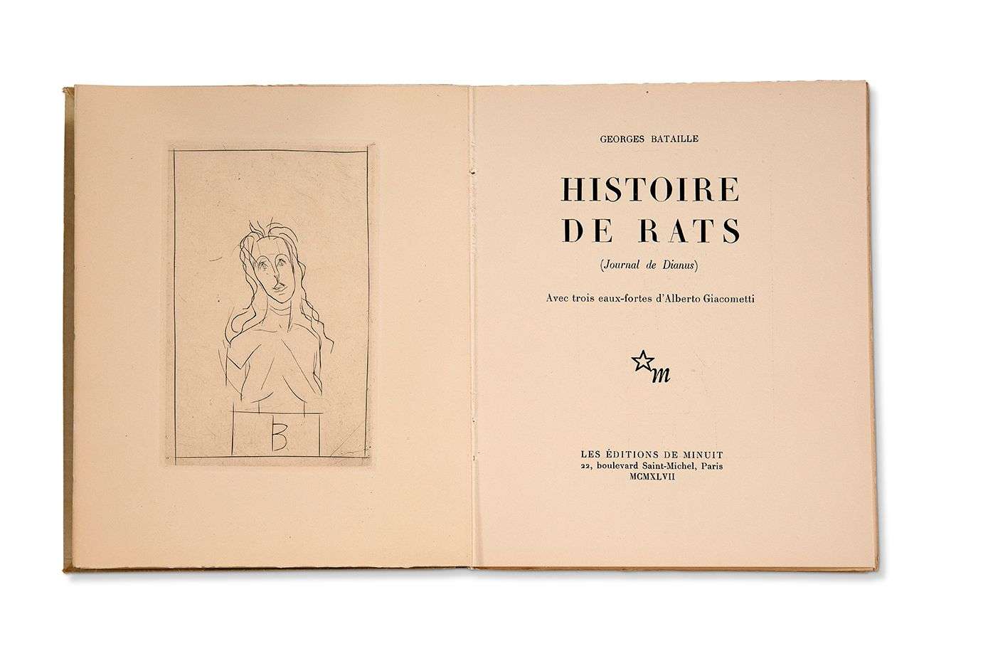 Histoire de rats (Journal de Dianus). Avec trois eaux-fortes d'Alberto GIACOMETTI (Paris, Les Éditions de Minuit, 1947) | in-8 broché.
