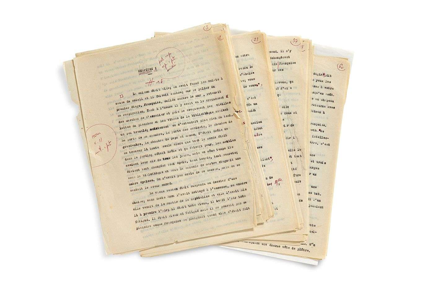 Ce tapuscrit est un double carbone | il est paginé et préparé pour l'édition au stylo bille rouge : chapitre I, p. 2 à 26 | chapitre II, p. 27 à 64.