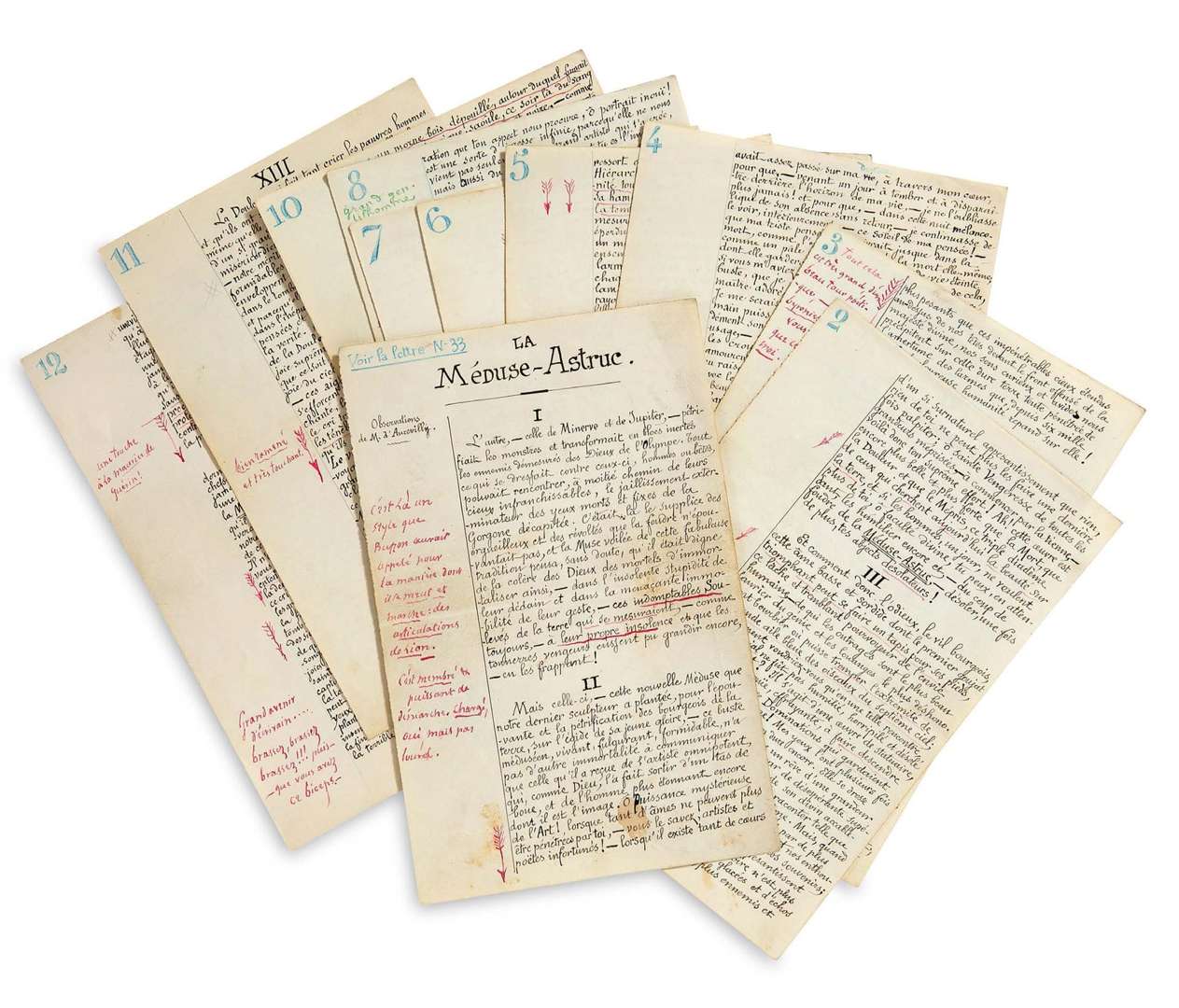-Astruc, août-septembre 1875 | avec d'importantes annotations autographes de BARBEY D'AUREVILLY en marge | 12 pages in-8 (21 x 13,5 cm).