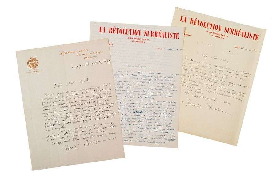 3 L.A.S. à Pierre de Massot. Paris, 9 juillet et 29 octobre 1925, 20 mars 1926. 4 pp. in-4 dont avec en-tête de La Révolution surréaliste et de la Brasserie Lutetia.