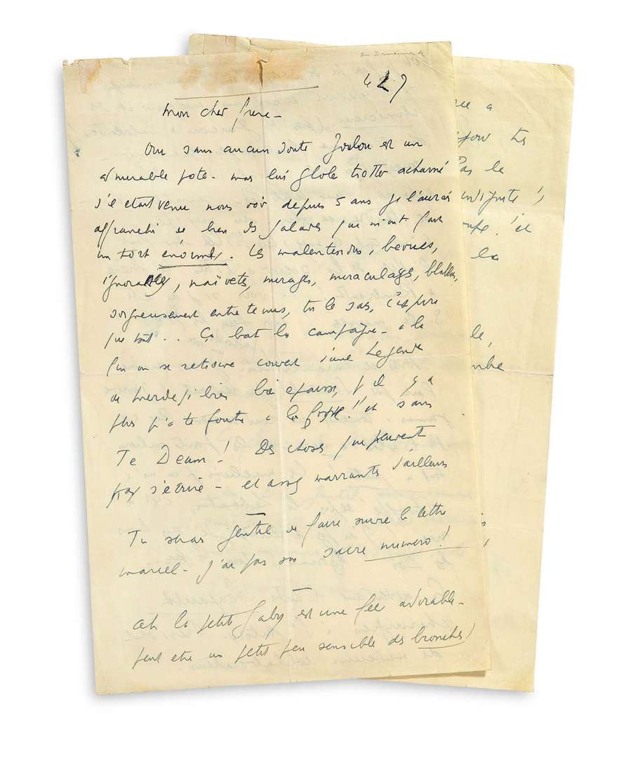 Il se plaint des tracas qui lui sont causés et « de bien des salades qui m'ont fait un tort énorme. Les malentendus, bévues, ignorances, naïvetés, mirages, miraculages, blablas soigneusement entretenus, tu le sais, c'est pire que tout... Ça bat la campagne, à la fin on se retrouve couvert d'une légende de merde si bien bien épaisse, qu'il y a plus qu'à te foutre à la fosse ! et sans Te Deum ! » La lettre se poursuit par un petit mot sur la santé de sa belle-mère Gaby Pirazzoli, « fée adorable - peut-être un petit peu sensible des bronches ! ». Puis il s'en prend à la médecine et « aux temps où il y avait encore une médecine et des cliniciens (pas des garçons de Laboratoire !) »... Il termine sur ses problèmes d'argent : « Arts et Carambouille. Je suis encore fait pour Scandale [Scandale aux abysses, Chambriand 1950] (pas touché un sou !) je redoute ! J'arrive jamais à toucher un rond de rien. [...] Les millions qu'on m'a estouffé depuis la Libération c'est à rire ! J'ai pas de recours. Je suis hors la Loi ».