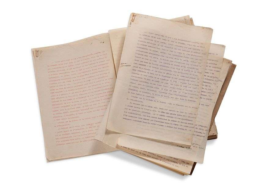 - Tapuscrit 1: environ 280 pages sur autant de feuillets grand in-4 aux encres rouge et bleue.