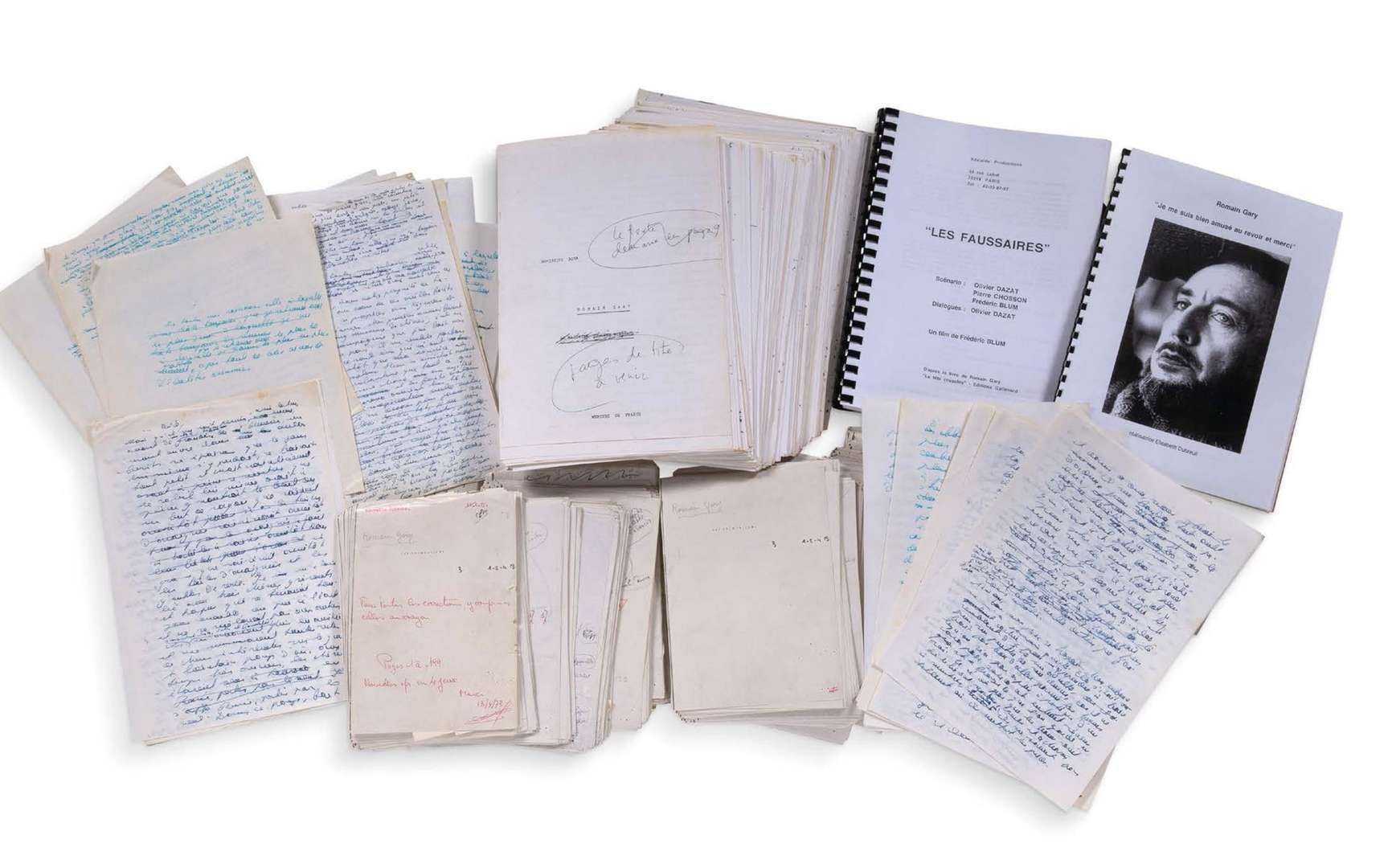 Ensemble d'ébauches et manuscrits autographes, et de tapuscrits, certains lourdement corrigés par Gary, pour Les Enchanteurs et sa traduction américaine.