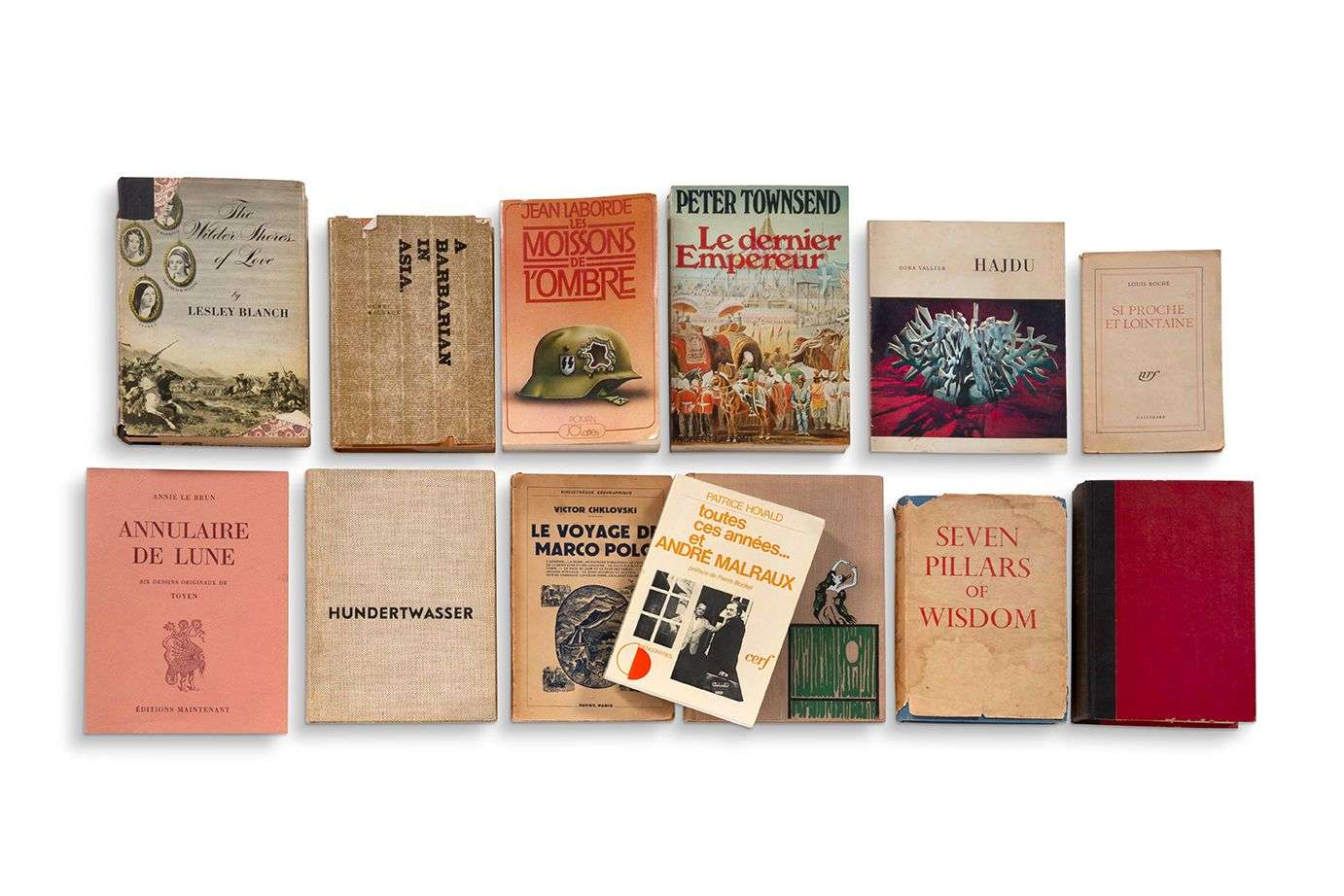 Summer lovers, 1958), Lesley BLANCH (The Wilder Shores of Love, 1954), Sergio CORRÊA DA COSTA (Every inch a King. A Biography of Dom Pedro I, first Emperor of Brazil, 1953), Paul JENKINS (The Paintings of Paul Jenkins, 1961), Henri MICHAUX (A Barbarian in Asia, 1949). Plus quelques ouvrages en russe de la bibliothèque de Romain Gary, et quelques ouvrages ayant appartenu à Lesley Blanch ou à Jean Seberg.