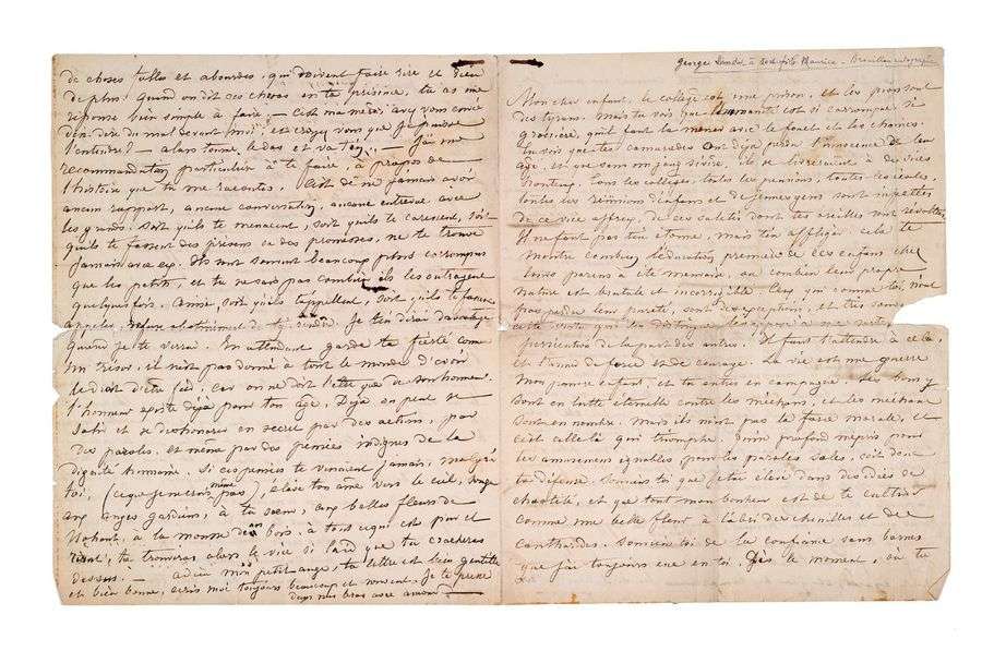 Sand à son fils Maurice, curieusement en contradiction avec les aventures romantiques et passionnées de l'auteur.