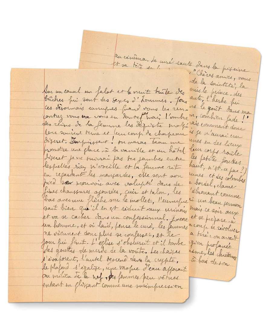 Manuscrit d'un texte surréaliste délirant, pornographique et anticlérical.